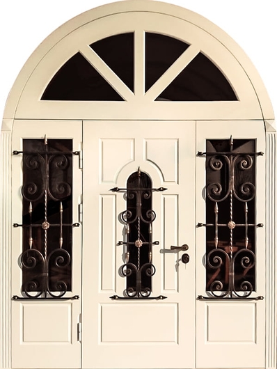 Арочная входная группа МДФ со стеклом и ковкой — это идеальный вариант для тех, кто ценит сочетание классики и современных материалов. Панели из МДФ обеспечивают прочность и устойчивость к перепадам температуры. Поддерживают стилистическое единство экстерьера и интерьера. Дизайн-проект создаёт завершённый образ входной группы.