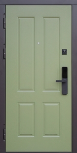 Стальная дверь с окрашенными зелеными панелями и биометрическим замком КД-1374