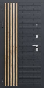 Входная дверь с черными панелями МДФ и реечным дизайном отличный выбор для тех, кто ищет практичное и красивое решение. МДФ-панели обеспечивают долговечность и стабильность внешнего вида на протяжении многих лет. Поддерживают стилистическое единство экстерьера и интерьера. Дизайн подойдет тем, кто ищет надёжность и эстетику.
