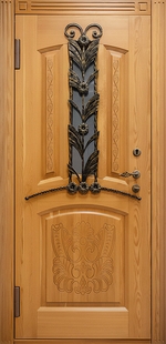 Входная уличная термодверь с узким стеклом, ковкой, панелями МДФ со шпоном — это гармоничное сочетание классического дизайна и современных технологий. МДФ-панели подходят для использования как внутри помещения, так и на фасаде. Делают дверь визуально выразительной и современной. Отделка гармонирует с любым архитектурным стилем.