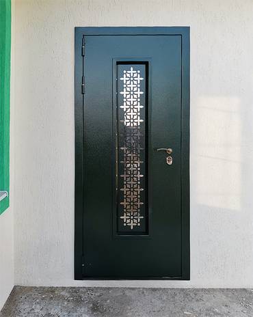Стальная серая порошковая дверь с биометрическим электронным замком